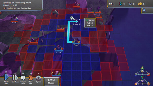 An SRPG staple, there is also permadeath for every unit, and a run ends when the entire party has been permanently killed. The player wins by progressing through encounters completing objectives, recruiting units, and collecting loot until they are strong enough to face the final boss.