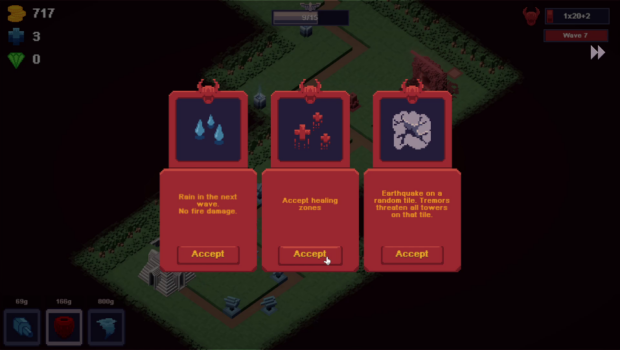 You start with a God standing on a temple at the center of the map. You build towers to protect the temple from the waves of enemies. With every wave you summon, the procedurally generated terrain gets revealed gradually. From time to time you will receive boon cards to enhance your build. You may also receive Curse cards if the enemy has corrupted your towers when they pass by. The unique terrain and the drawing of Boon-Curse cards leads to an addictive gameplay loop.When the temple gets destroyed you will retain the Faith and Hope earned during the run. These are used to upgrade the build for the next run. The upgrade paths offer several options to build a better defense in the subsequent runs.