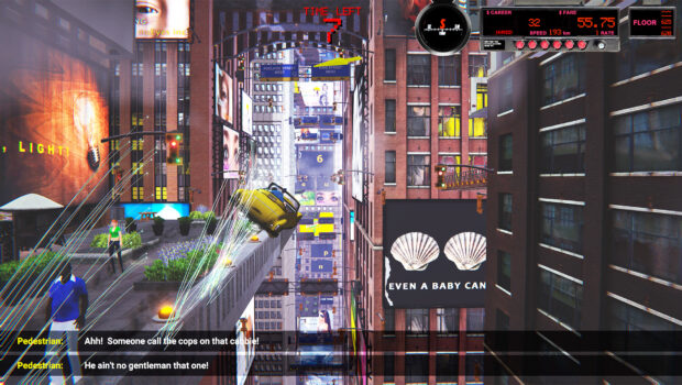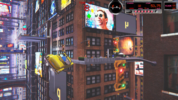 Choose a hover taxi and get working. The player (taxi driver) is challenged to pick up and deliver as many chatty and zany passengers as they can while dodging mile-high skyscrapers, busy 24th century urban skyways, & blabbermouth pedestrians, without running out of time. The faster they deliver fares the more money they earn and the more bonus time they gain.Features: