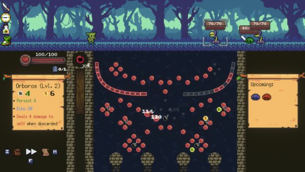 Peglin is a turn-based RPG, where you battle enemies them with pachinko gameplay. You build a deck of orbs and relics that you can use on your journey to do damage and buff your stats. Unlock new Peglin classes by reaching achievements, and challenge yourself to the “Cruciball”, where each level is gets increasingly spicy.