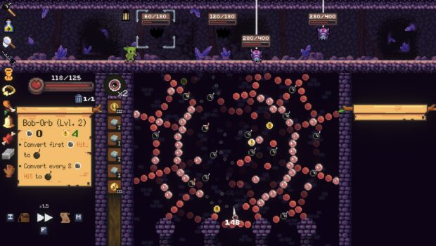 Peglin began as a game jam project called “Goblin Drop”, created at the 2019 OrcaJam, a small annual game jam hosted in Victoria B.C., Canada. (check it out here: https://gedig.itch.io/goblin-drop-jam)The theme of the jam was “fall” (as in the season) but we decided to interpret it as falling physics. Physics immediately brought us to Peggle, PopCap’s classic 2007 physics-based puzzle game. Another inspiration (and obsession at the time) was Slay the Spire, and we wanted to somehow incorporate deck-building roguelike mechanics. Goblin Drop was born, and we couldn’t pull ourselves away from the game. After the game jam, COVID-19 gave us a lot of extra time to dedicate to passion projects, and we were able to pour our souls into this little goblin.