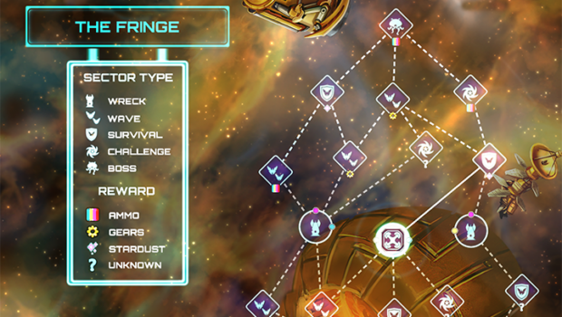 Gameplay takes place in the “Bermuda Triangle” of asteroid belts, where players salvage their way out of a sea of space junk and take on an alien horde with the ultimate custom-fitted fighting drone. To survive the belt, players must solve puzzles on the fly and adapt their playstyle to the wide variety of weapons and defenses they discover while scavenging procedurally generated maps.This is a game where your spaceship is the puzzle grid. You fly it through an obstacle-strewn asteroid field, using your environment to shuffle the pieces around while fending off enemies.