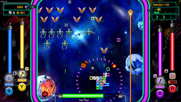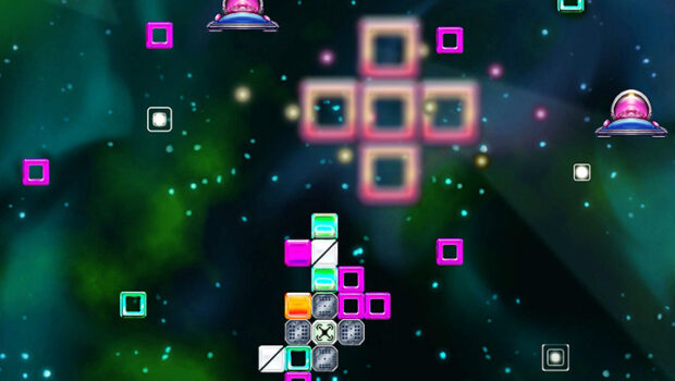 The goal is to collect square mineral ‘blocks’ and merge them together by arranging them into patterns or ‘combos’. When that happens, they collapse and upgrade into something more useful. Every combo the player makes rewards them with ammo that powers their ship’s weapons and defenses.