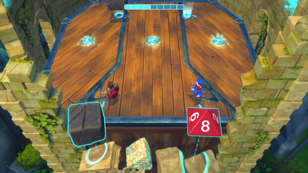 The Tower is an action-building party game where players repair a tower (or other kinds of structures) using unusual building blocks while defending it from mysterious assailants. They must keep doing so until they reach the target height.​To build and defend their towers, the players must use the wildly unusual building blocks created by their magic generators, ranging from the good old stone block to a desk or a giant piece of cheese. They can transport these blocks by levitation using their magic staff and place them on the tower's broken walls. If the block stays put on the wall long enough, it will solidify and become unmovable. After a few blocks have been solidified, the building platform goes up, bringing the players closer to victory.