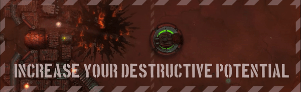 With this Blue Stuff you can purchase exciting new toys like “Zeus’ Blessing”, “Suicidal Turrets“ or just some good old “Napalm Rain“ to ascend the ranks of ordinary, trash-fighting Round Thingys of Destruction! and become the ultimate destroyer of what remains of the dusty, barren worlds of DESTRUCTURE.
