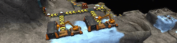 Every asteroid body is a 3D object. The 3rd dimension adds another level of complexity to your factory designs. Asteroid mass can be removed or deployed as needed. If a mine gets depleted, it leaves a hole in the ground.