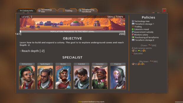 Turn the Red Planet green! Start by cultivating bacteria and creating the ideal conditions needed for plant life on Mars. Grow grasses and other flora to boost your colony rating; the government may even take notice of your endeavors and sponsor your efforts to build a bigger and better settlement!