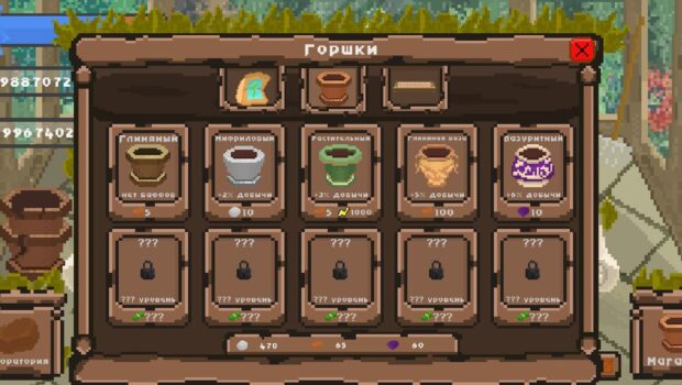 The pot is the most important element of the greenhouse, without which it is impossible to grow plants. Pots are a special part of the interface in the game. With their help, you can carry out the necessary manipulations with plants. When you click on the pot, a context menu appears below with all possible actions. Manipulations can be carried out both with a pot and with the plant itself. When a plant enters a new phase, the pot menu will be unavailable once the phase is complete.