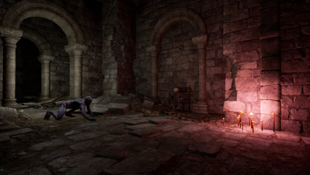 Imprisoned Hyperion is an immersive sim, first-person rpg. In the game the player travels through a dungeon, where he can cook food on a fire and sleep in a bed if he finds one. Sleeping and eating is the only way to restore health.The player character can use magic and spells such as creating a platform to climb into inaccessible terrain or "flying" to cross an abyss.