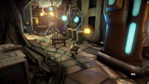 Enjoy a carefully crafted environment of medieval architecture and futuristic gadgets. Intelligent robots walk the streets of manually carved stone, power banks light up antique lamps, and typewriters serve as input devices for powerful computers. - Puzzles and mini-games