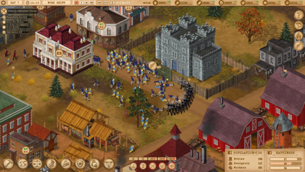 The population of your city consists of 3 classes: nobles, bourgeois and workers. Each class has a unique role in the city economy. Nobles serve as officials and policemen, bourgeois pay taxes while workers provide the labor force. Their vision of the future is very different and they are ready to fight for it.