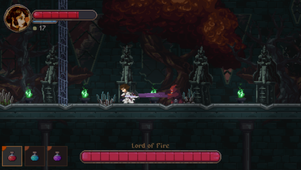 GameplayThis game is a side-scrolling metroidvania adventure that centers around sword combat. Your task is to traverse an expansive kingdom, encounter new friends and enemies, engage in battles with formidable bosses, and enhance your character's abilities through leveling up.