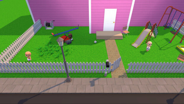 Baby Formula is a couch co-op game where you and your friends play as a group of babies trying to perform household chores. The adults are stuck watching TV or doomscrolling, and leave the cake-baking, lawn-mowing, and tyre-changing to the babies.