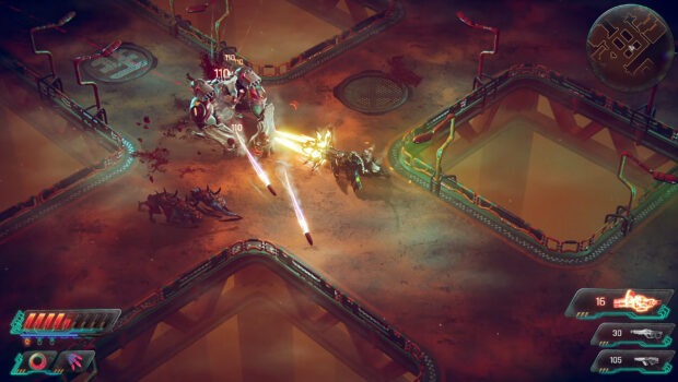 Collect loot that changes the way you play. All item drops you find have unique and meaningful upgrades to your mech, weapons or abilities. Find interesting item combinations that suit your own playstyle.