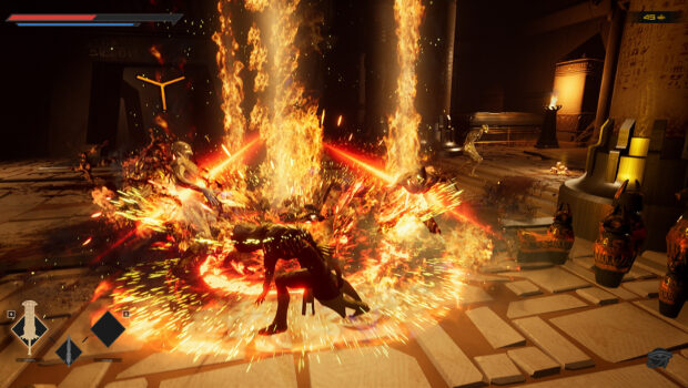 Similar to DMC, Fall of Gods features a Style Rank system that rewards the player for defeating enemies in a stylish way. To increase the style rank, the player needs to mix air combat with ground combat, use as many different weapons and attacks as possible and avoid getting hit by enemy attacks.