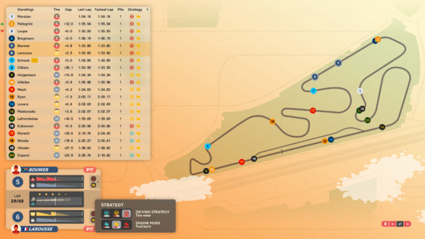 In the strategy-driven motorsport management game Golden Lap you’ll step into the fashionable shoes of a legend in the making — although this time you’ll stay behind the scenes instead of sliding behind the wheel yourself. Golden Lap offers sleek, minimalistic visuals and an intuitive design as it hands you the reins to your very own iconic racing team during the golden era of open-wheel racing. This is your chance to prove your worth as a strategic mastermind by making pivotal decisions and shaping the destiny of your team to leave your opponents in the dust!Just like in real life, you’ll have to allocate your budget across your drivers, staff, cars and sponsors at the beginning of every season. Each year, a number of races take place that give you the chance to perfect your strategy during both qualifying rounds and major races, from tuning your cars to timing your pit stops. And when your team is not racing, you’ll be responsible for the crucial task of managing and improving your cars as well as your team’s overall standing. Can you maintain a winning streak throughout the years, or will you have to make an epic comeback?