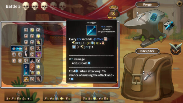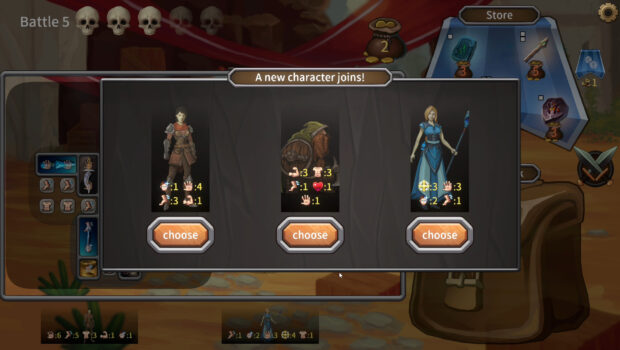 A game consists of a series of consecutive battles, and after each of them you get money to improve this configuration of objects. New characters are also added to the group, which expands the grid with their characteristics.