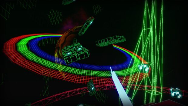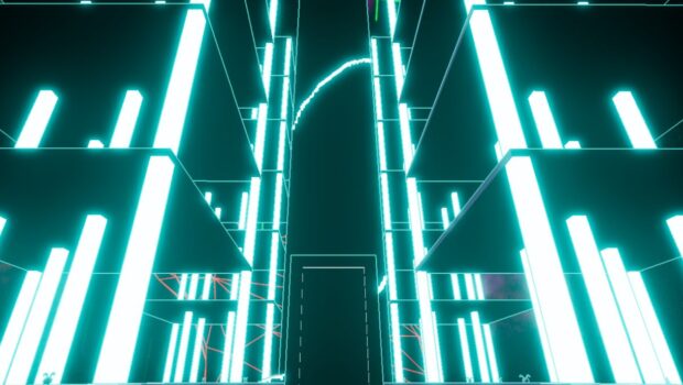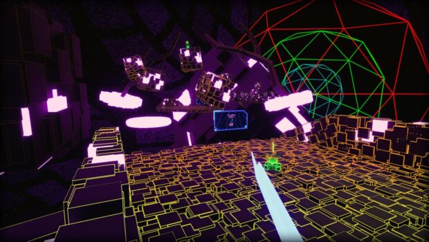 Embark on a journey through the Virtual World, navigating neon-colored platforms with diverse designs and varied terrain relief.