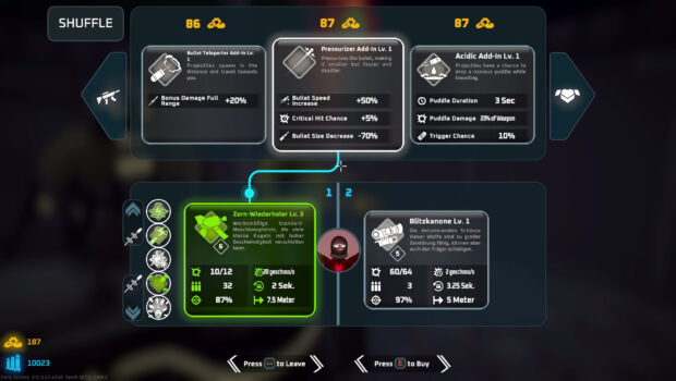 Add-Ins. 70+ Weapon modifications to switch whenever you want. From usual "bullet splits on hit" and "piercing" to "Dropping Acid Puddles" and "Bullets Fly to you from the place you aimed at". But beware, your enemies can use Addins too.
