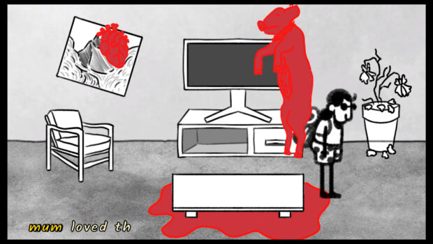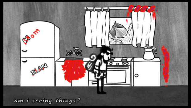 Gameplay is based on writing. Through this mechanic players get to experience the story more intense. At the end of the game, we have a confrontation with father. It's a little boss fight. We can lose or win this and depending on it we get different scenarios.The plot is about the main character - Milan. He is living together with his mother at the place he grew up. This place brings up bad memories of how Milan took part in the death of his childhood friend. This affected his mind. What we see in white-black shades is a reality, red is Milan's vision which he takes as a part of reality and it doesn't bother him.
