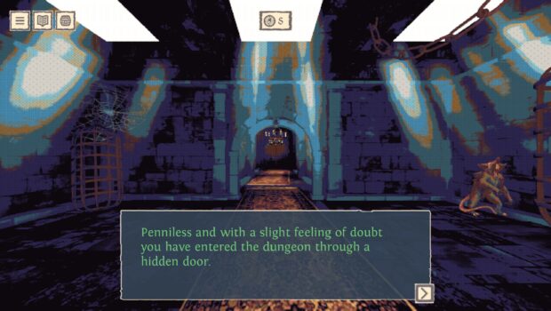 The game's story is also not finished yet, but the premise is as follows: the player takes a job as janitor to get into a specific underground dungeon. The dungeon itself is led by an incompetent and somewhat annoying dungeon master named Mondar Trogg. Trogg commands you around, and soon you get access to more and more areas; you learn that the dungeon is in a sorrow state and a lot of the inhabitants are unhappy. This is your chance to improve the situation - but also find the object of your actual desire: the artifact that is said to be hidden deep in the caves and halls of this dungeon, and which will fulfill your destiny!