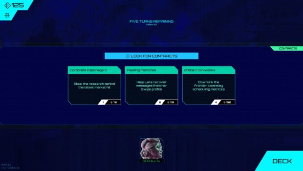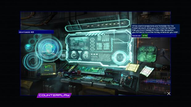 Netspectre invites the player to experience life of a hacker in an original cyberpunk universe. The gameplay stands on three pillars, each allowing the player to appreciate a different aspect of this experience:1/ The heart of Netspectre lies in the metaphorical hacking, taking place through solving netsecurity-themed, procedurally-generated, tactical puzzles. This allows the players to feel like a hacker through feeling smart and resourceful as well as through evocative audiovisual aesthetics.