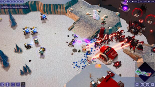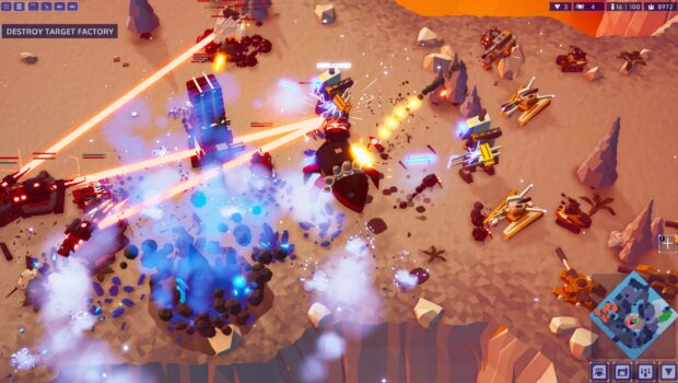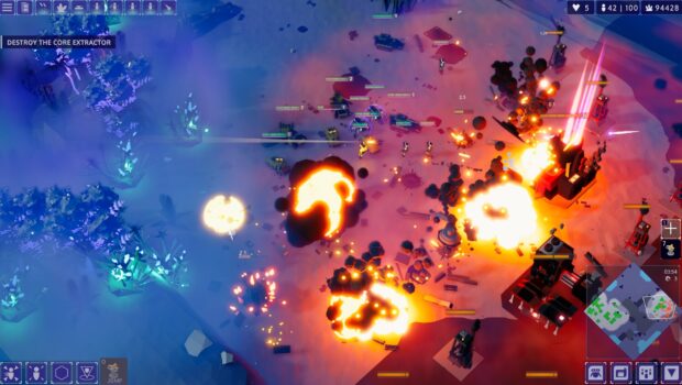 It's a sci-fi game with banging explosions and blocky robots that fight over control of the procedurally generated levels. You control the fate of the Engineers, an unfortunate class of robots that are the last hope of stopping the planet devouring Planetary Core Extraction corporation (PCX).