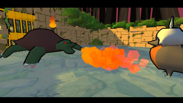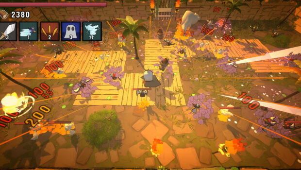 The Jungle-Dungeon:Each Dungeon consists of procedurally generated Room-to-Room (hades-like) fights. There are Enemy-Rooms, Minibosses, a Shop and a zeldalike Endboss in the Dungeons.
