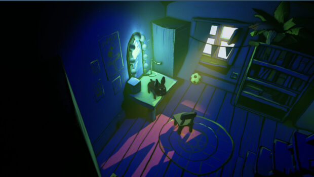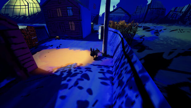 You play as a dog called Matty. It has a third person view with level specific camera. The main actions are pulling jumping and grabbing on to things. It is very linear and story based. The challenges are different types of puzzles and fun solutions to get to a next level and cinematic. Mood is noir and cartoony.
