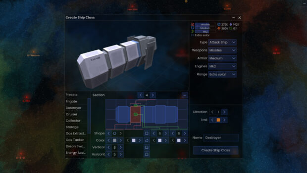 Stardust Exile is an RTS set in the Milky Way galaxy, containing currently known stars and exoplanets with their real characteristics. The remaining star systems are procedurally generated based on currently known data. The total number of star systems is 200,418,611,014 counted with a script. This value is based on the current estimated number of stars in our galaxy. You can explore and control systems and rename stars and planets that you control outside of the Solar System.It allows you to create your own spaceship designs with an in-game procedural spaceship generator to give your fleet a unique look. Spaceships visuals do not change their stats. This way players won't have to use ships they don't like because of superior stats.