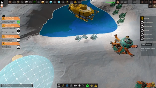 Select your mission partner from one of the 8 major global corporations in the year 2224. Create an expedition company, build a colony with habitation modules, generate power, secure a water supply and extract resources from the harsh landscape. Manage every aspect, from resource processing to food production and expedition finances. 8 playable mission partners are: Omnia Corp, Quantum Dynamics, PharmacoGenetics, Kansai Robotics, Wushan Group, Genetix Corp, Nexus Systems and New World Mining.