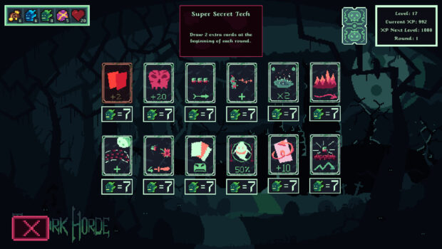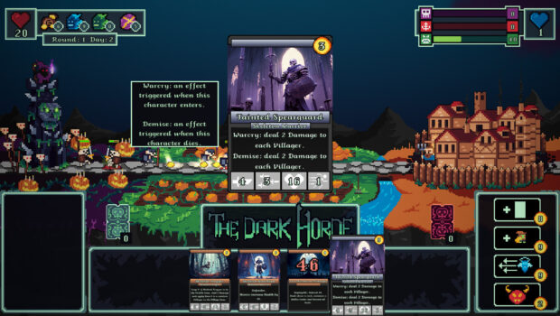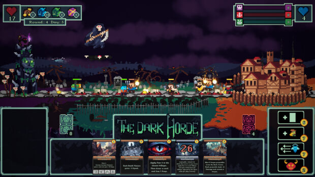 The Dark Horde is a roguelike, hence evry run is different by the previous. The core of the game revolves around playing cards and actions that cost time. You can only play a card/action then wait for its time cost to be payed. During the "wait time" the battle unravels automatically. Once the action stops again, you can decide based on strategy, on your build or any circumstance what to play next: a card or an action!During the battle you can collect gold and souls which are then used to purchase new cards, improve the actions or activate special skills that alter the gameplay.