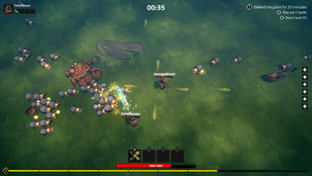 Find, upgrade and combine your spells with powerful elements. Everything works together to ensure that no 2 builds are ever the same. Multiply this by the amount of wizards in your squad, and the potential for pure, unhinged chaos is endless!