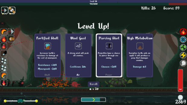 1) Shoot your enemies and defend the turtle. Level up to pick new talents and skills and create strong builds to survive! Your aiming skills will be tested!