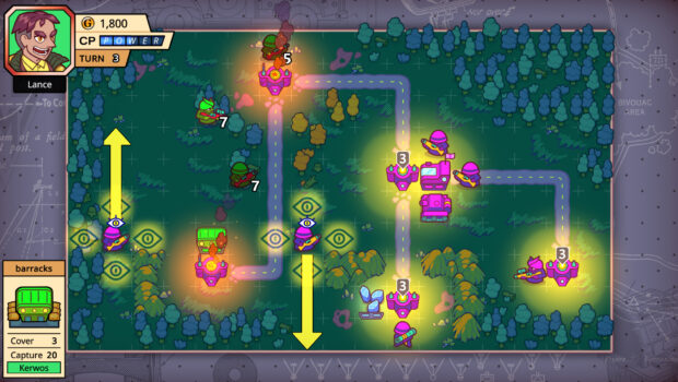 In Vangaro Tactics you command a vibrant roster of cartoon units into turn-based battles. There's "normal" levels and Stealth Missions, where you infiltrate behind enemy lines at night, and should choose your moves carefully to avoid alerting too many foes.You can capture factories to get gold and then recruit units in the barracks.