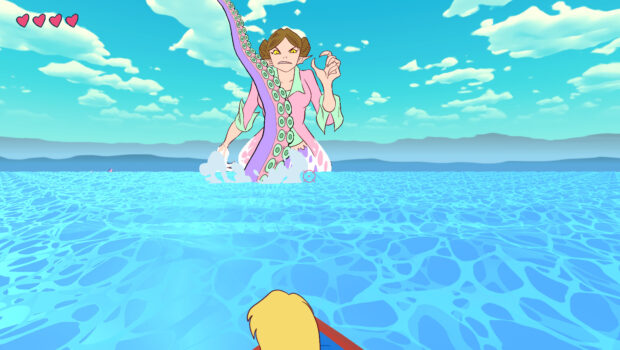 These are the words that V, an overworked wife and mother who hates videogames, hears in her sleep right before waking up in her worst nightmare: she has been cursed and trapped in the world of videogames by a mysterious entity, a divine being that calls himself the “god of entertainment”. This god wants to teach her the “meaning of fun” so she forces her to play the videogames. Now she must beat any foe unlucky enough to cross her path, and free herself from a crazy low-poly world inhabited by odd creatures by beating them with her pan.