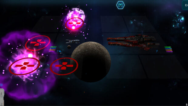 Ships can also be given special capabilities via Augmentations. These can be passive or active, specific to a single ship or mutually exclusive to ships. For example, “Hacking Protocol” is not associated with a specific ship in your task force, and grants a 2.5% chance for each enemy’s move to fail. “Depleted Novallenium Coatings”, on the other hand, is assigned to a specific ship. This augmentation grants shredding to all attack cards except for those with a plasma or laser type (shredding attacks also deal part of their total damage to armor).