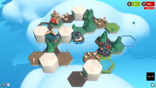 Players can send their gnomes on different expeditions. Each expedition comes with its own challenges. By buying buildings, placing them strategicly players will mine small hex islands to the ground and extract resources from them. After depleating the resources of an island the gnomes will move on and go to the next one. Each island can give players building parts which then can be used in their home town to build up their fairytale metropolis. They build structures and expand them in the city to gain bonuses and upgrades for their next expedition run.We combine Dorfromantik building with strategy, puzzle roguelite gameplay.