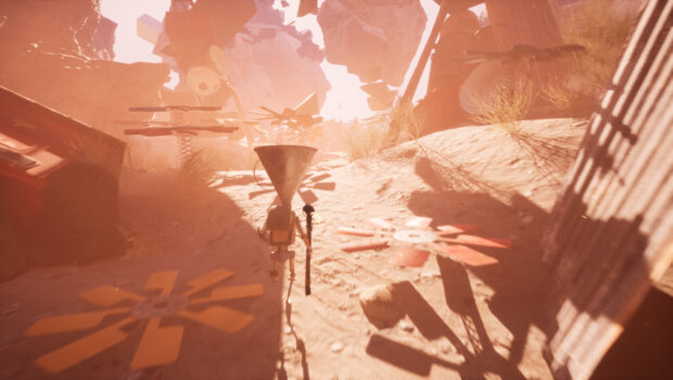 The second island, a junkyard inside a hot canyon valley, is everything, but deserted. Compared to the first world, the player has to rely a bit more on their dexterity, since the path winds upwards between towers of junk and across gaps. Odd mechanical creatures and moving metal flowers add to the overall bustling atmosphere of this world.