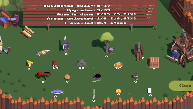 The game also provides a nice scene to check the player's stats: how many trees cut, grown, how many warriors hired and steps taken.