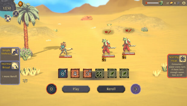 Aliosso is a turn-based roguelike all about combining dice and cards to win battles and survive a perilous journey across the desert of Samsara.Customize your dice: change their type, place a rune, increase the value of a face, or replace it altogether! Find the right cards that synergize with your dice, because there is only one goal: Power. You'll need every tiny bit to boost your abilities and stop the Djinn.