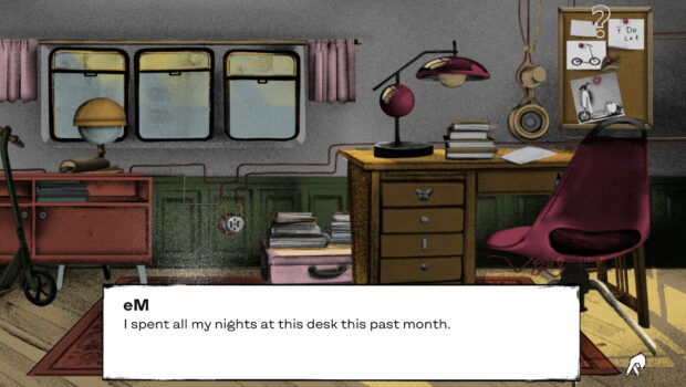 Since the game is narrative-driven, here’s a brief overview of the story. You are eM and you just finished school. You live in Heden, the Lower Town, home to merchants, tram drivers, geographers, and smugglers. You are running errands for your granny when suddenly this happens: you get invited to study at the prestigious Vaughis University in the Upper City. It’s a dream come true! But there’s a catch: although Vaughis is dominating the hills right above Heden, the way up is far more difficult than it seems…
