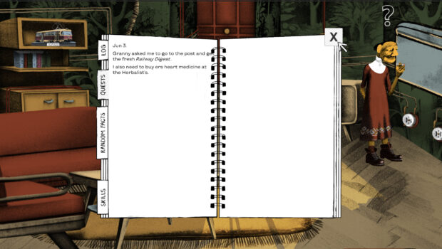 Сore mechanics are fairly classic for an adventure game: you explore different locations, talk to NPCs, and solve mini-puzzles to discover new information, unlock new areas on the map, and receive quests to propel the story forward. In the future we will implement additional mechanics that will reward you for reading as many optional dialogues as possible and bring you perks and special features such as map shortcuts or the ability to see hidden objects.