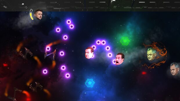 Under the fire of Russian missiles, the game is created by the anonymous art group Bunker 22, which was formed during the war.bunker-22.com