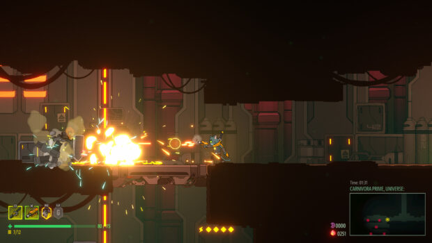 The game is story-driven, but there are some game modes for challenging missions where players can find some loot and earn in-game money. Levels are built randomly, but there are some predefined rooms that exist on each level (secret treasures, boss rooms, etc.) Enemies and loot are randomly generated as well.