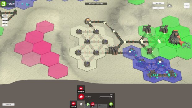 Core Gameplay:- A hexagonal grid for building on procedurally generated planets.